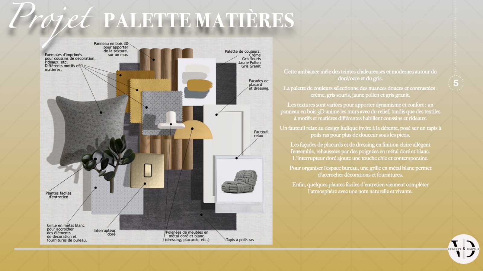 Notre agence vous propose une approche personnalisée pour concevoir des intérieurs uniques, adaptés à vos besoins. Grâce à des planches d'inspiration (moodboards), des plans 2D, rendus 3D et dessins techniques, vous visualisez votre projet avant le démarrage du chantier.
