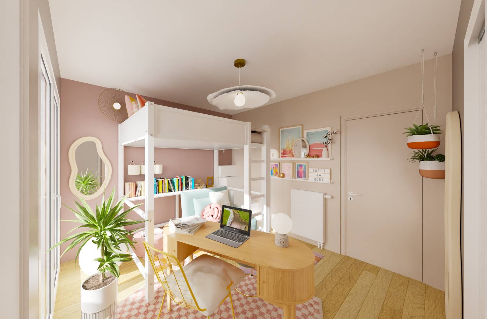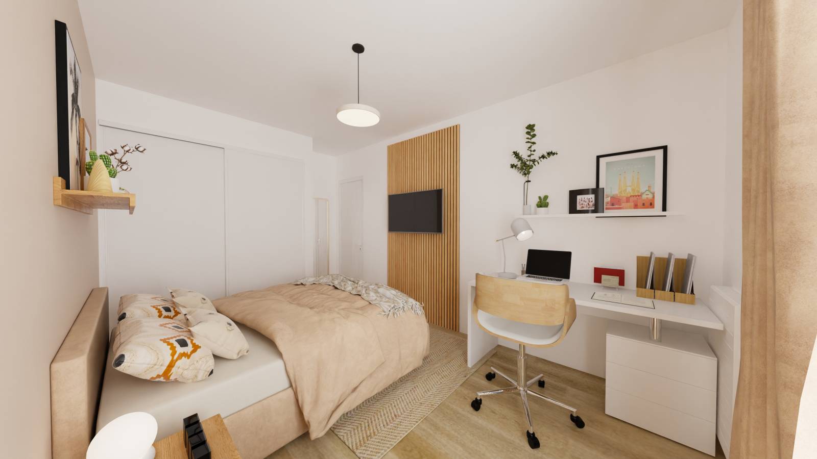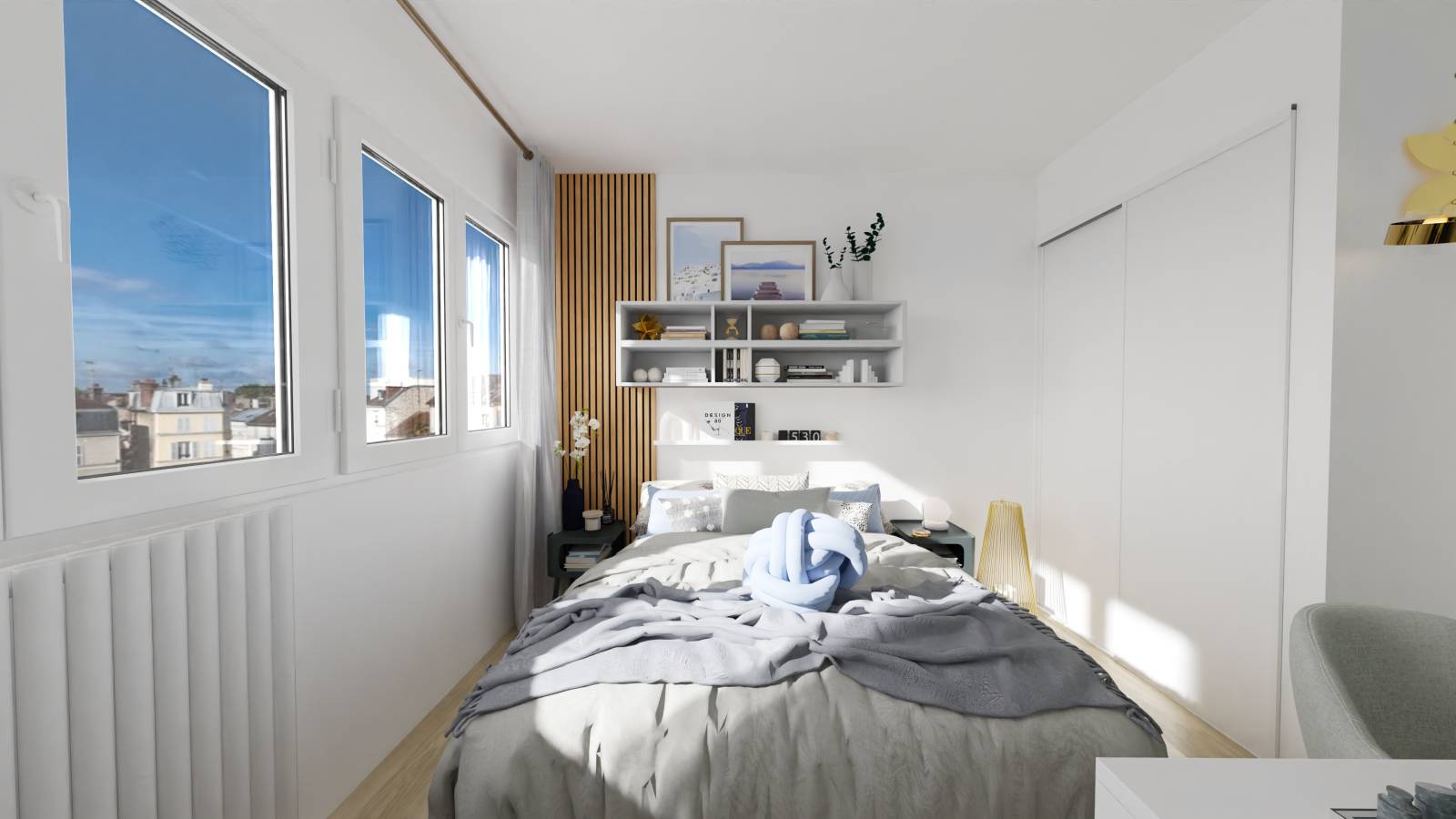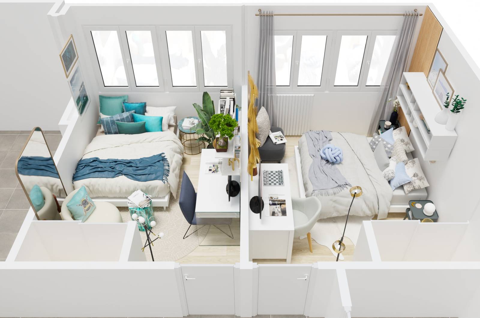 Aménagement intérieur par un architecte d'intérieur d'un appartement de 70m2 avec 4 chambres pour location étudiante à Saint-Germain-en-Laye, 78100