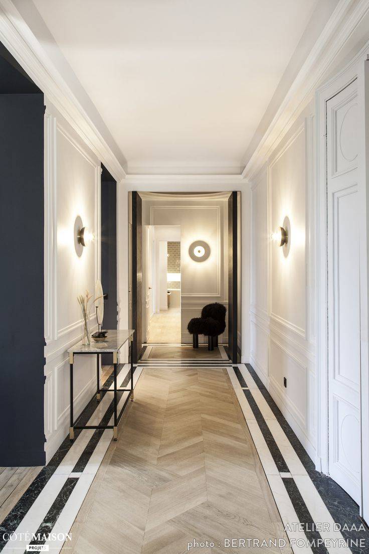 Aménagement intérieur d'une entrée d'appartement et d'une chambre parentale à Neuilly-sur-Seine (92200) dans les Hauts-de-Seine.