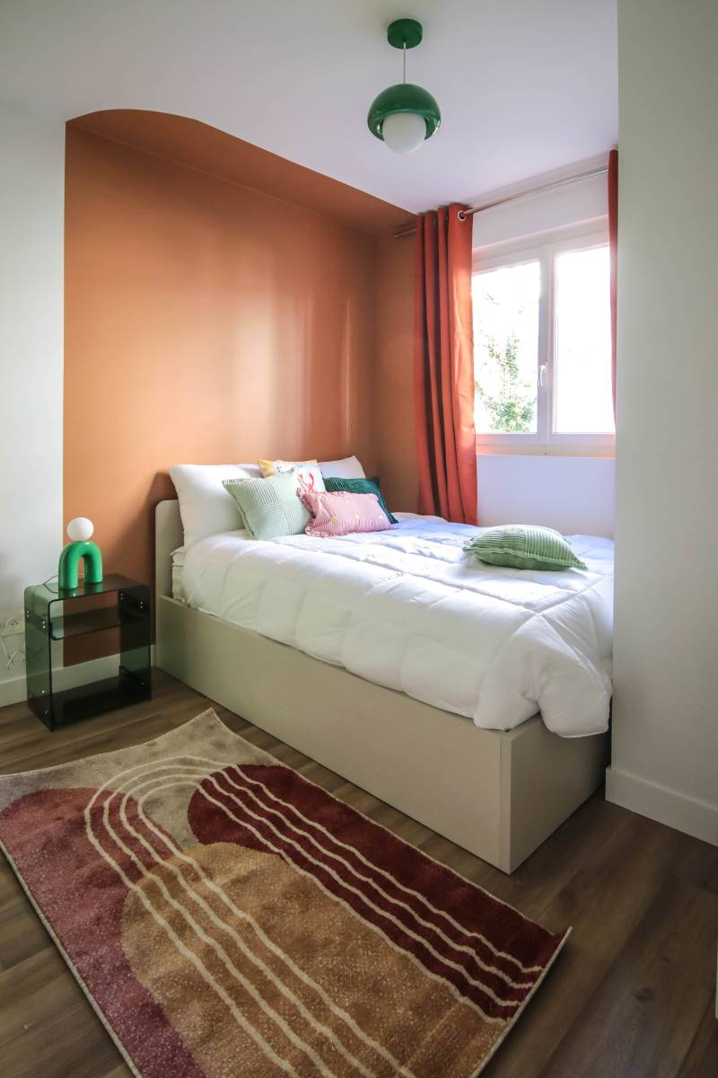 Une rénovation appartement colocation à Levallois-Perret bien pensée permet d’augmenter significativement la valeur locative du bien tout en améliorant l’expérience des occupants. Ici, chaque chambre bénéficie d’une identité propre grâce à un travail sur les couleurs et les ambiances, favorisant l’appropriation des lieux.
