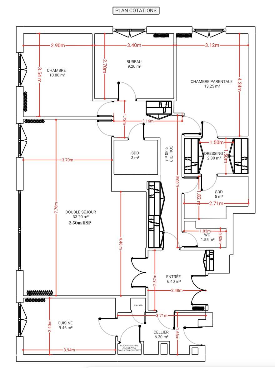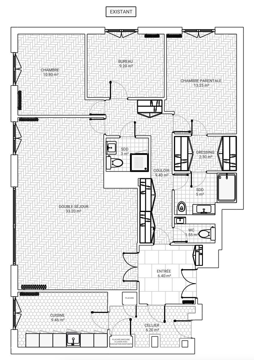 Rénovation et transformation d’un appartement de 110m2 à Versailles : Nos plans 2D pour une rénovation réussie.